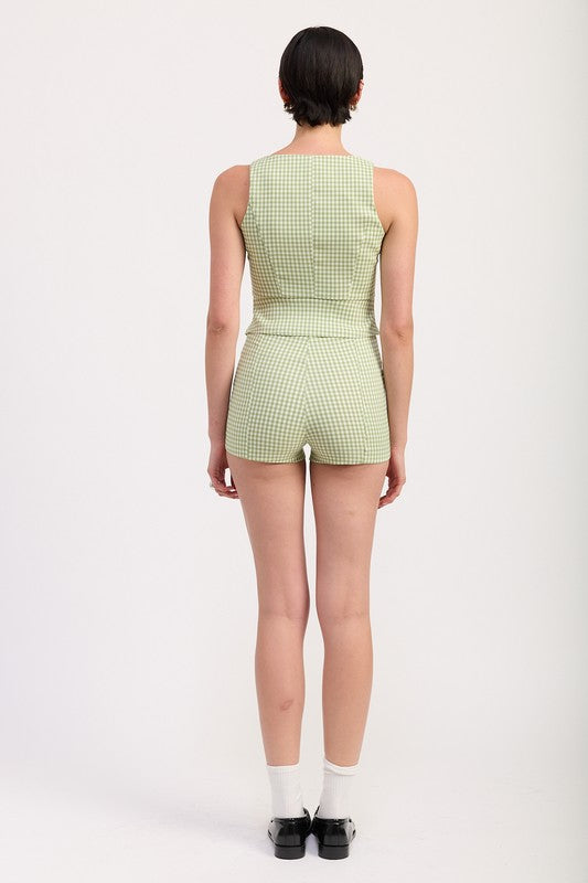 Refresh your summer look with the Sage Micro Mini Gingham Shorts and Button Vest Top Set. Designed from soft, cozy fabric, this set suits any event with ease. Stay stylish and comfortable while beating the heat. Its versatile design and flattering silhouette make it a must-have. For the ideal fit, we recommend sizing down.
